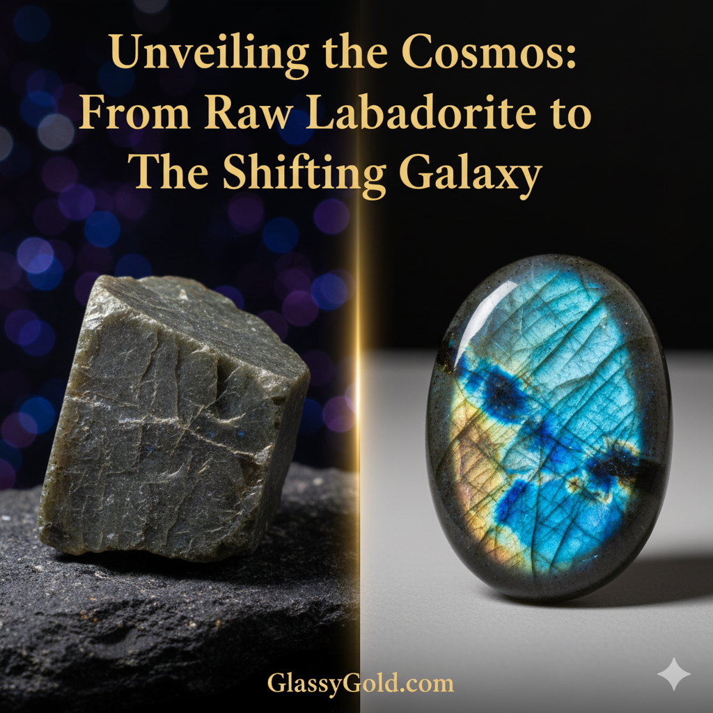 Welcome to the GlassyGold blog! If you’ve been captivated by our recent video on YouTube and TikTok, you’ve witnessed the stunning transformation of a truly magical gemstone. Today, we’re taking you deeper into the full story behind Labradorite – aptly named “The Shifting Galaxy” – a journey from a dull, unassuming rock to a meticulously polished gem that flashes with all the colors of the cosmos. Discover the secrets held within this enchanting stone and the artistry involved in bringing its hidden beauty to light.
